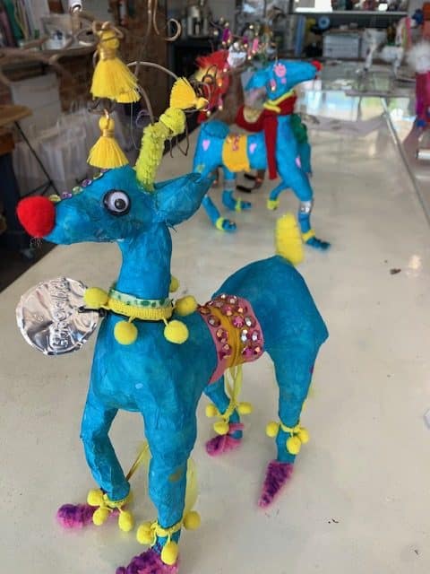 Day 2: Kids will decorate their reindeer using real grapevines for horns and mixed media, including ribbons, tassels, Posca pens, etc. It’s super creative and fun! Then, they will take their reindeers home that day.